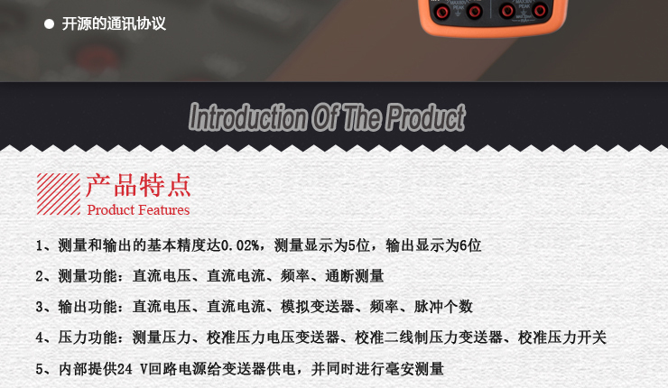 VICTOR 15+ VmA壓力校驗(yàn)儀是一款0.02%精度的高性能過程校驗(yàn)儀,具有模擬輸出直流電壓、直流電流、模擬變送器、頻率、脈沖個(gè)數(shù)等功能,同時(shí)具備測量直流電壓、直流電流、頻率、通斷測試以及壓力測量等功能;該儀表開放通訊協(xié)議,便于二次開發(fā)。