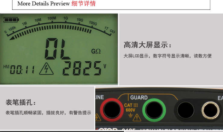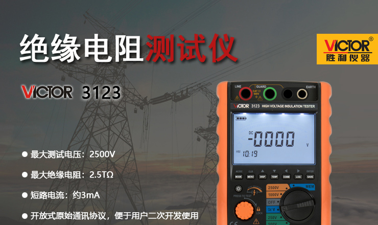 VICTOR 3123高壓絕緣電阻測試儀適用于現(xiàn)場電力設(shè)備以及供電線路的測量和檢修。
