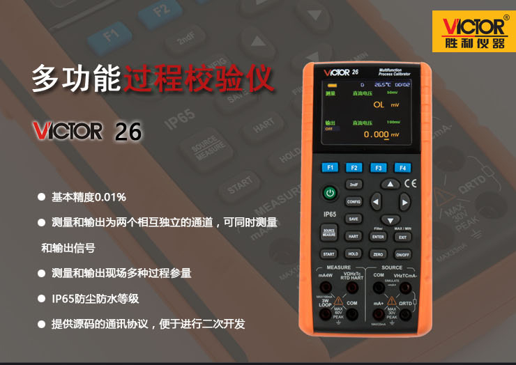 VICTOR 26多功能過程校驗(yàn)儀具有高精度測量和輸出現(xiàn)場所需的各種過程參量,適用于現(xiàn)場溫度變送器、壓力變送器、DCS、PLC等系統(tǒng)的調(diào)試和校準(zhǔn),并在石油化工、生物制藥、工業(yè)自動(dòng)化、大專院校和科研機(jī)構(gòu)等領(lǐng)域的得到了廣泛的應(yīng)用。