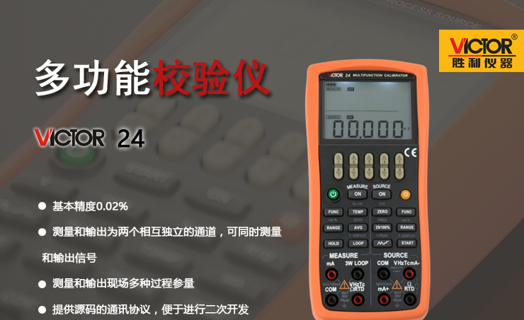 VICTOR 24多功能過程校驗儀具有高精度測量和輸出現(xiàn)場所需的各種過程參量,適用于現(xiàn)場溫度變送器、DCS、PLC等系統(tǒng)的調(diào)試和校準,并在石油化工、生物制藥、工業(yè)自動化、大專院校和科研機構(gòu)等領域的得到了廣泛的應用。