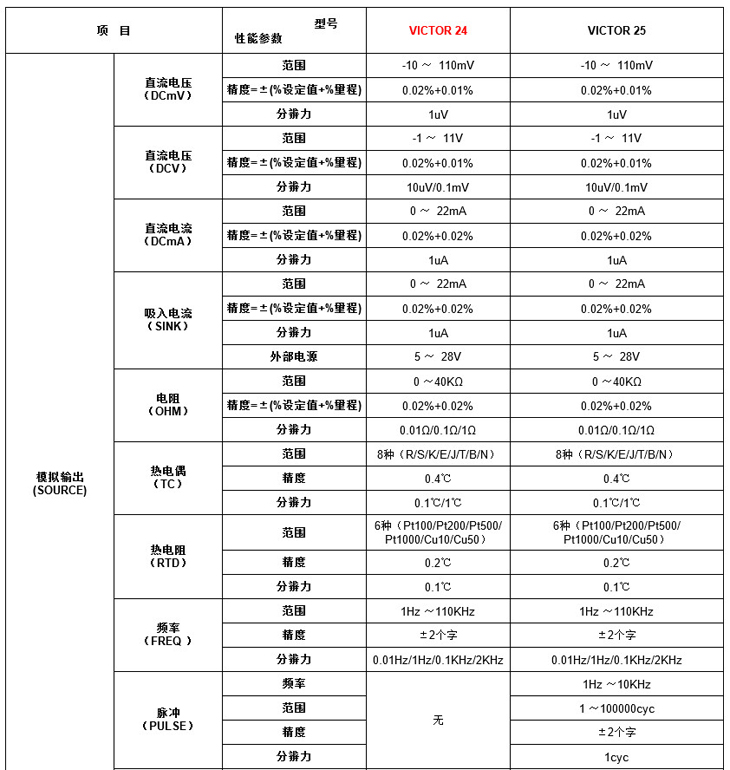VICTOR 24/VICTOR 25技術(shù)指標對比: