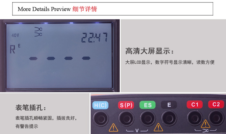 l 可測試包括了農(nóng)業(yè)設(shè)備的配電線、室內(nèi)配線、電氣機械器具等的接地電阻和土壤電阻率(ρ) 的測試。