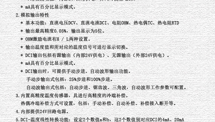 模擬輸出功能 [適用于校準(zhǔn)后一年內(nèi)、23℃±5℃、20~70%RH、精度=±(%設(shè)定值+字)]