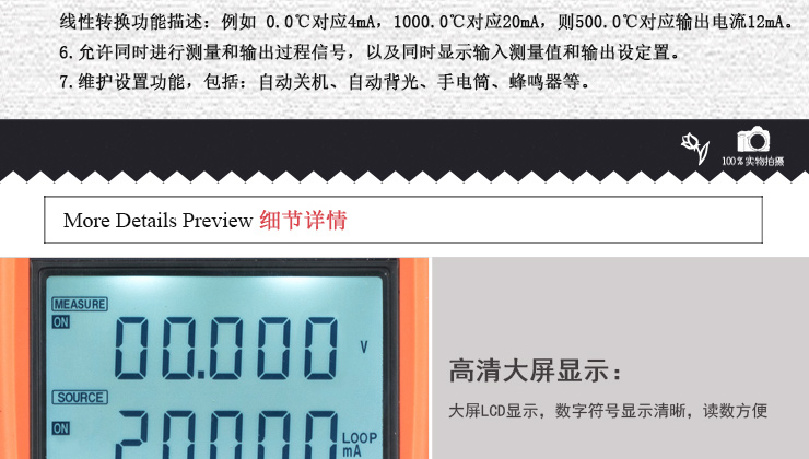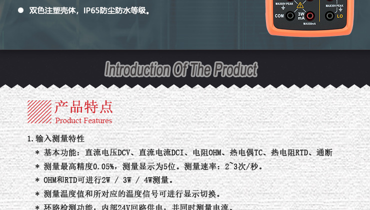* 測(cè)量最高精度0.05%,測(cè)量顯示為5位。