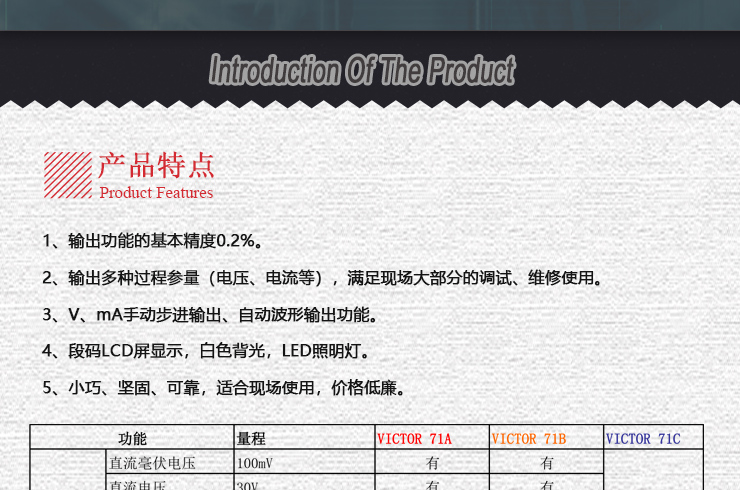 VICTOR 71C信號發(fā)生器 是一款小巧迷你型的手持過程信號發(fā)生器,可輸出電壓電流信號。