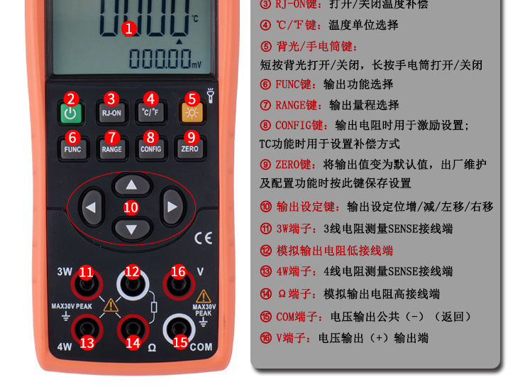 直流電壓DCV、電阻OHM、熱電偶TC、熱電阻RTD
