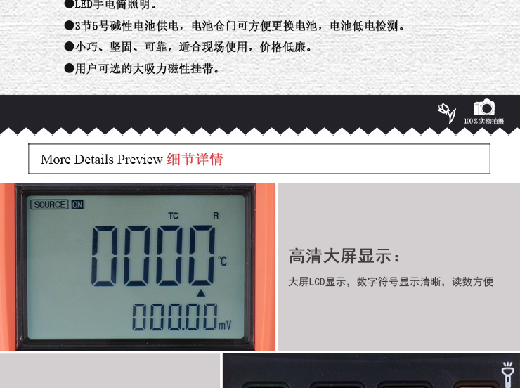 *3節(jié)5號(hào)堿性電池供電,電池倉(cāng)門可方便更換電池,電池低電檢測(cè)。