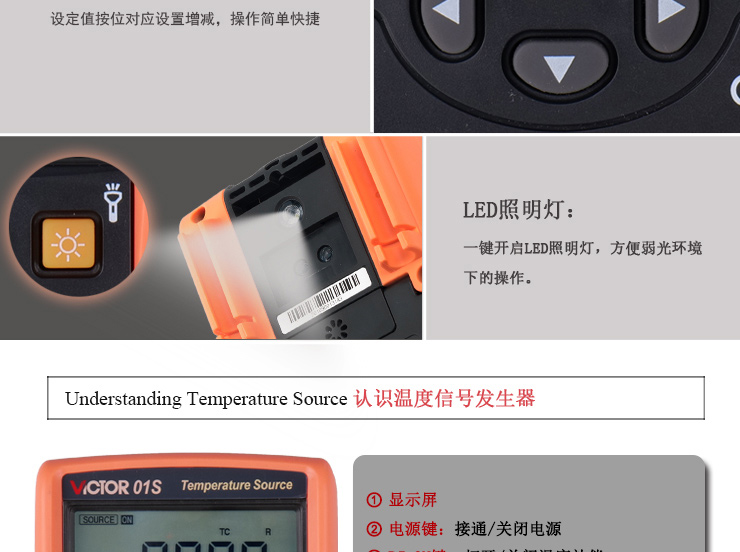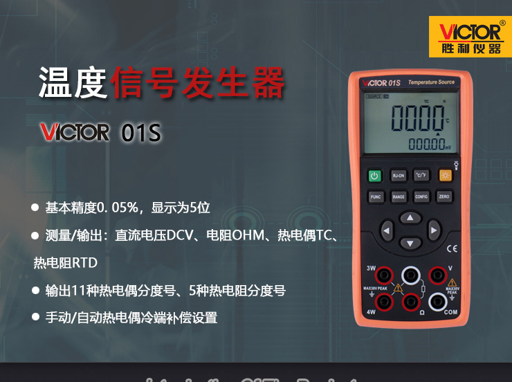 VICTOR 01S溫度信號(hào)發(fā)生器(以下簡(jiǎn)稱信號(hào)發(fā)生器)是一個(gè)由電池供電,能輸出電參數(shù)和物理參數(shù)的手持便攜式儀器??捎糜谀M輸出直流電壓、電阻、熱電偶、熱電阻。