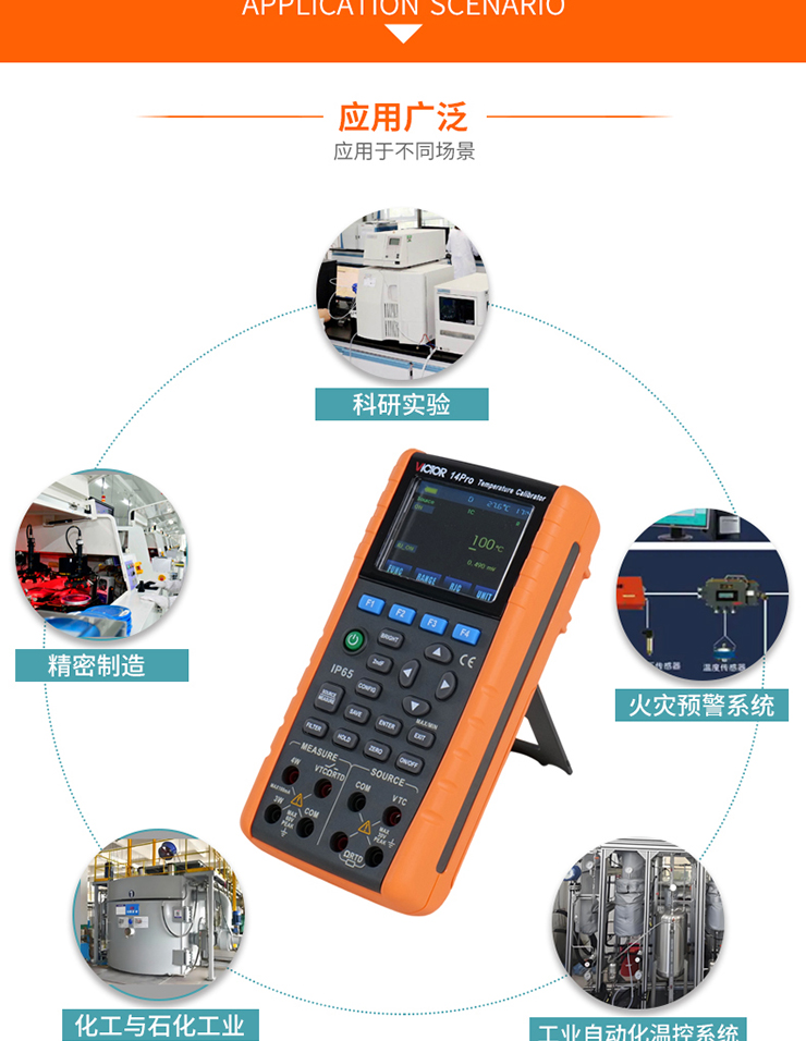 VICTOR 14Pro 溫度校驗(yàn)儀具有高精度測(cè)量/輸出熱電偶或熱電阻信號(hào),可滿足現(xiàn)場(chǎng)高精度,高可靠性的溫度設(shè)備的調(diào)試和校準(zhǔn),并在石油化工、生物制藥、工業(yè)自動(dòng)化、大專院校和科研機(jī)構(gòu)等領(lǐng)域的得到了廣泛的應(yīng)用。
