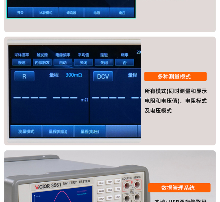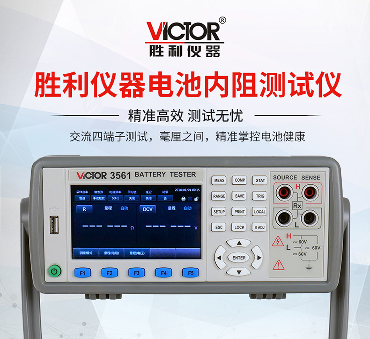 VICTOR 356X系列電池內(nèi)阻測試儀廣泛應(yīng)用于手機鋰電池、蓄電池以及動力電池等各種電池的測試。采用交流四端子測試方法,可更精準(zhǔn)地測試電池的內(nèi)阻和電壓。內(nèi)建比較器功能,可自動判斷電池參數(shù)是否符合標(biāo)準(zhǔn),以便統(tǒng)計合格率,適合各種電池檢測和分揀的場景。