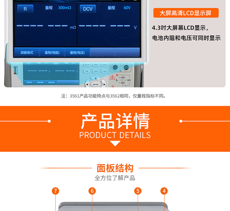 1、4.3吋大屏幕LCD顯示,電池內(nèi)阻和電壓可以同時顯示。